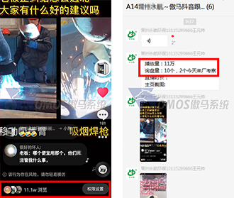 好消息!恭喜蘇州做高負(fù)壓焊煙設(shè)備的王總參加【傲馬企業(yè)抖音營(yíng)銷學(xué)習(xí)】,經(jīng)過(guò)精準(zhǔn)定位落地幫扶后第12天,視頻播放量11W,就開始獲得10個(gè)目標(biāo)客戶詢盤,后面還會(huì)不斷...